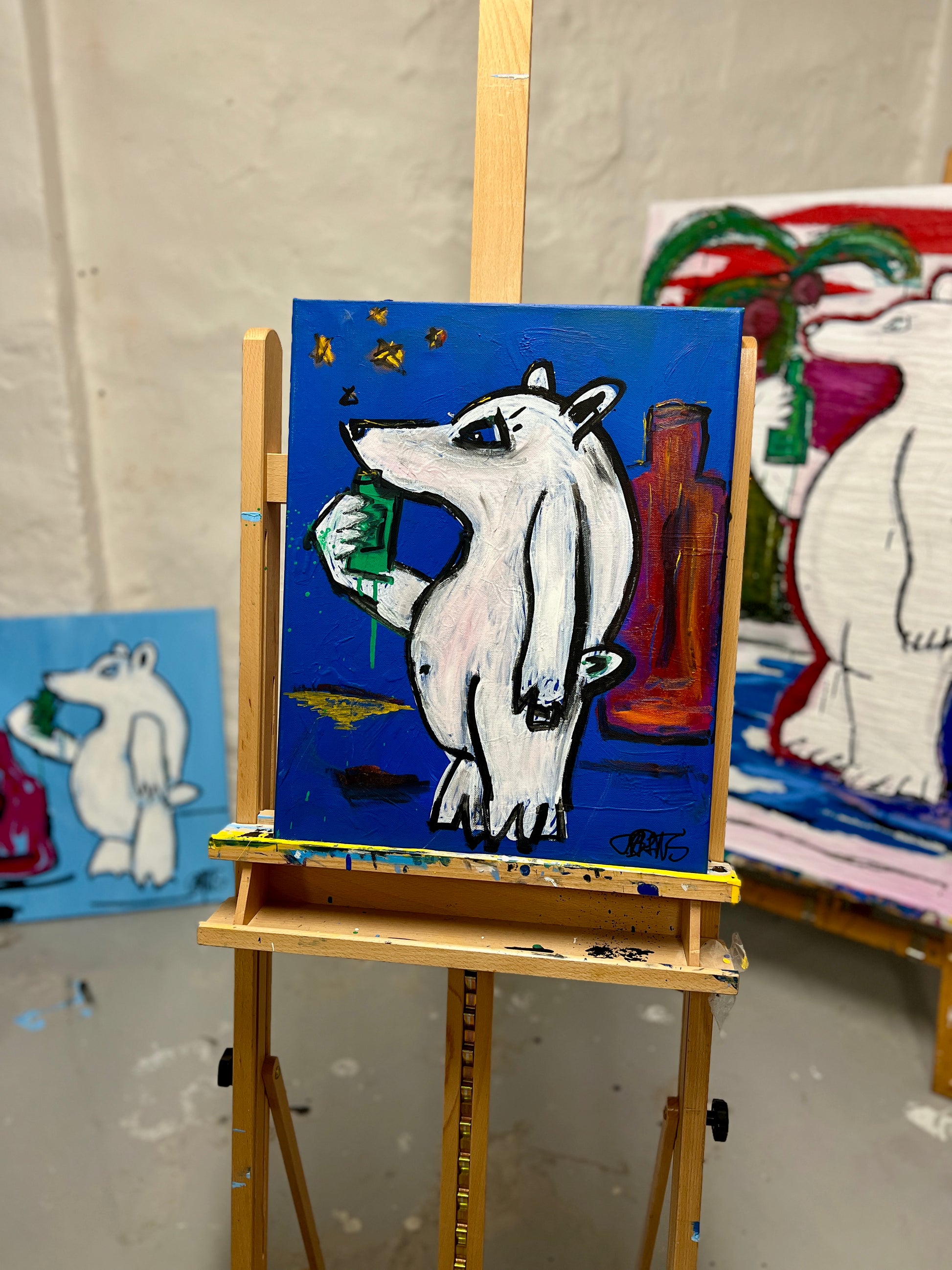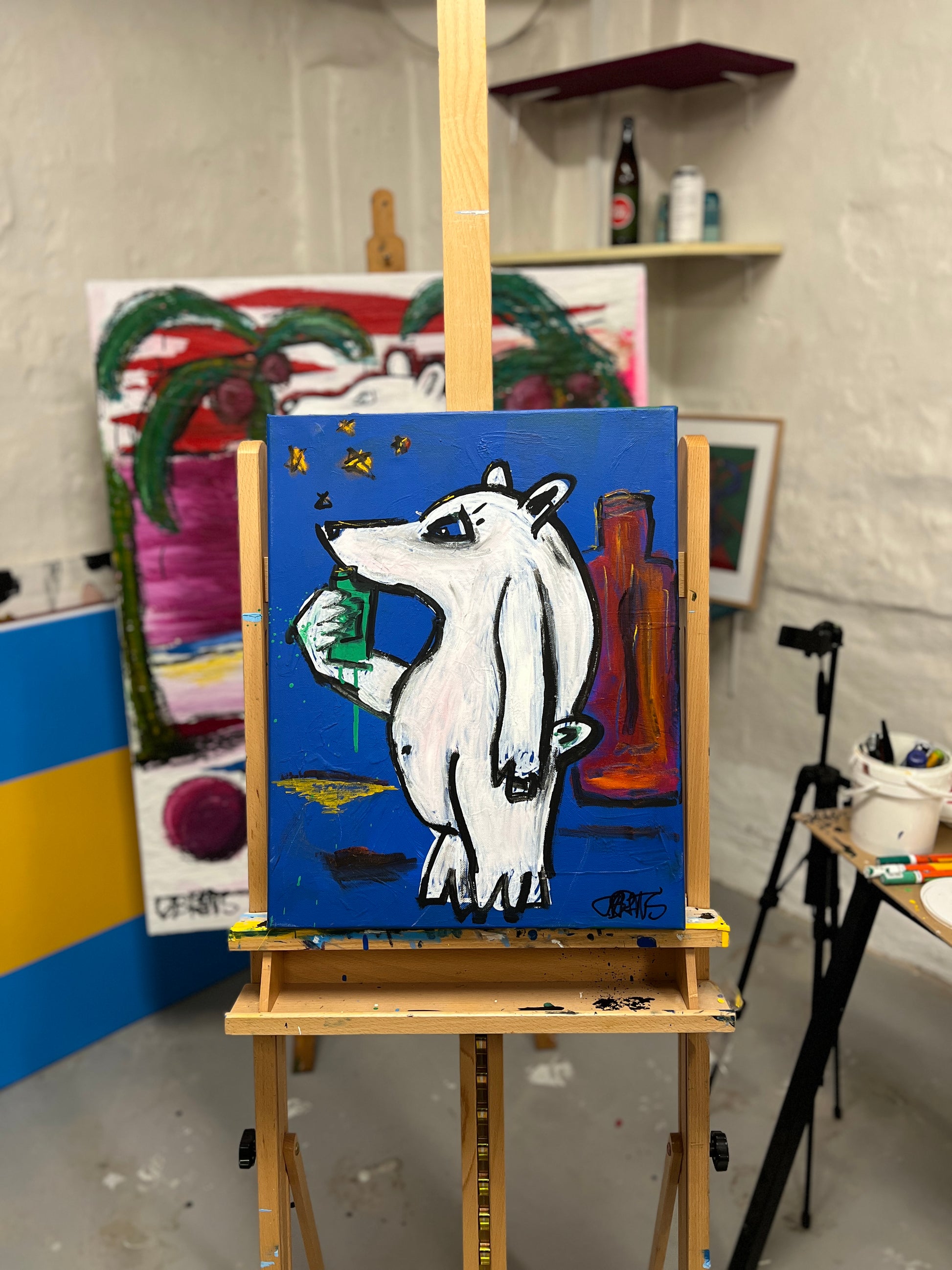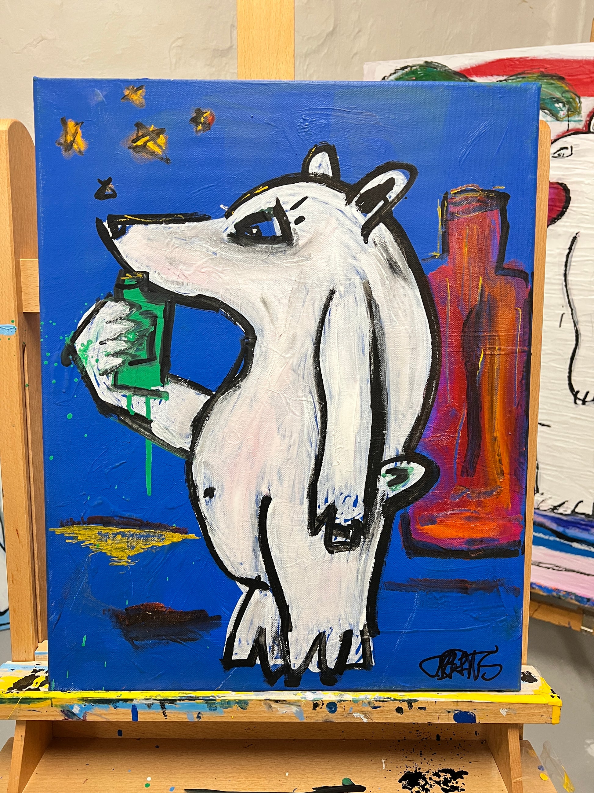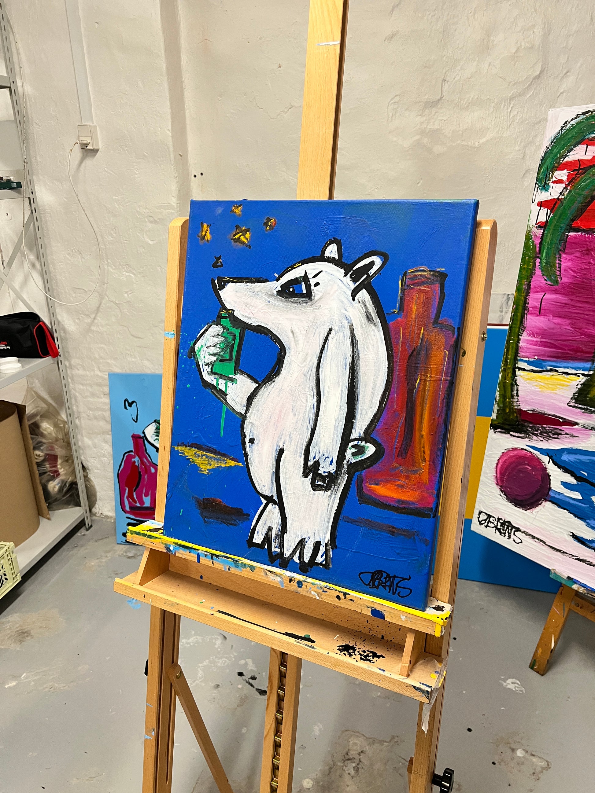 Akryl, oil stick, spartel, tusch