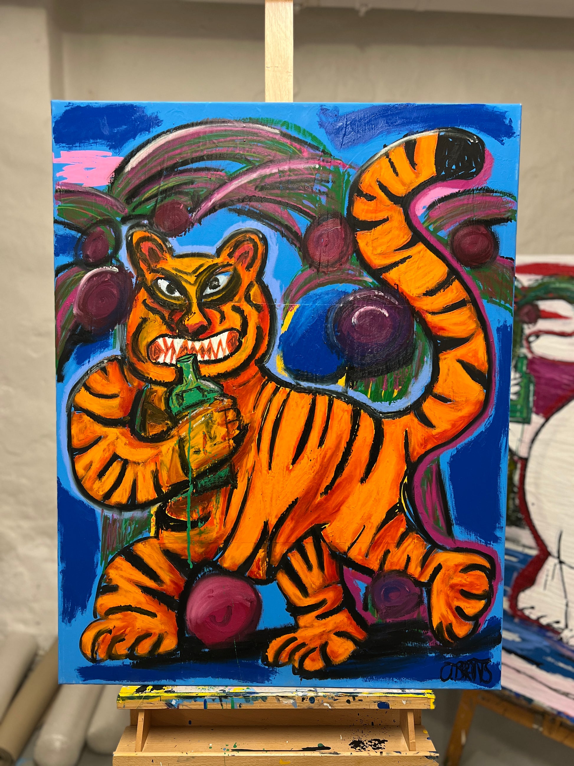 Akryl, oil stick, tusch